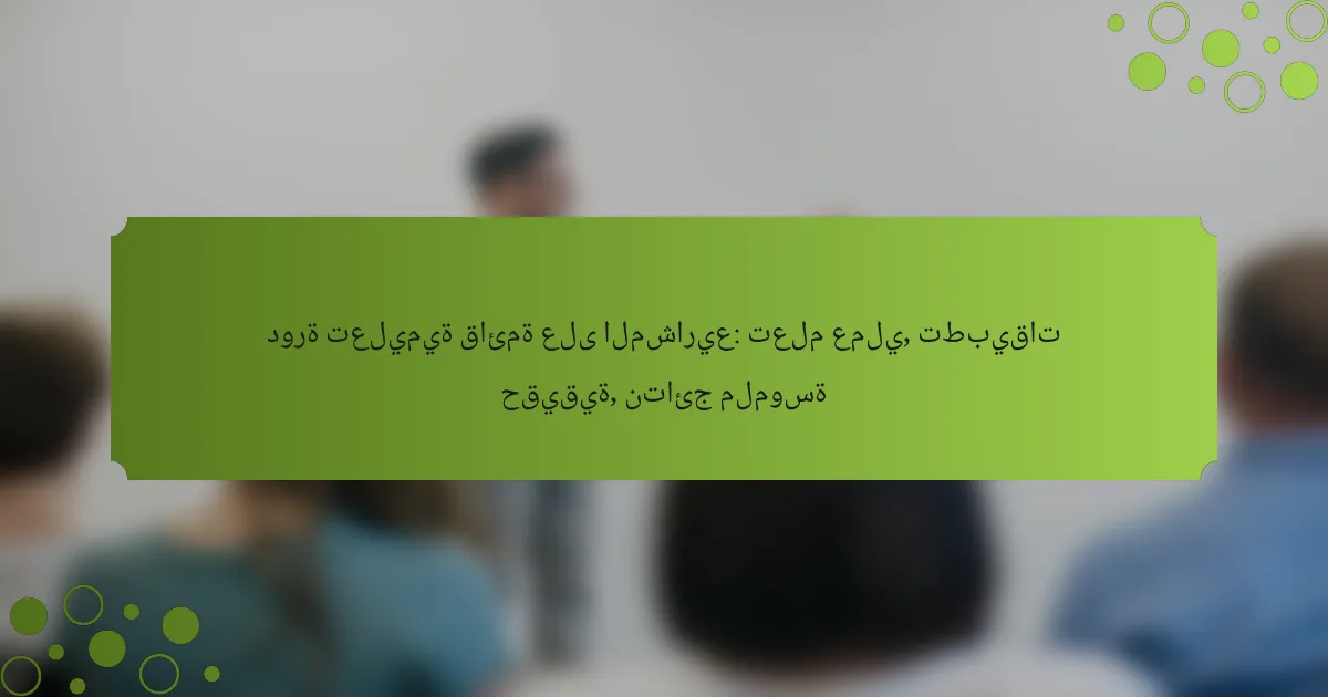 تعتبر الدورات التعليمية القائمة على المشاريع وسيلة فعالة لتعزيز التعلم من خلال التجربة العملية. من خلال الانخراط في تطبيقات حقيقية، يتمكن المتعلمون من تحقيق نتائج ملموسة وتطوير مهاراتهم بشكل فعال، مما يزيد من فرصهم في سوق العمل.