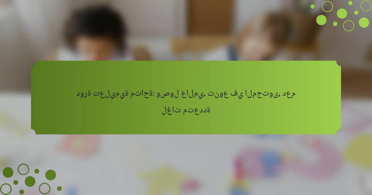 تقدم الدورة التعليمية المتاحة مجموعة واسعة من المحتوى العالمي، مما يتيح للمتعلمين الوصول إلى موارد متنوعة تدعم لغات متعددة. هذه المنصات التعليمية تسهل التعلم من أي مكان، مما يعزز تجربة التعليم ويضمن استفادة الجميع من المحتوى المتاح.